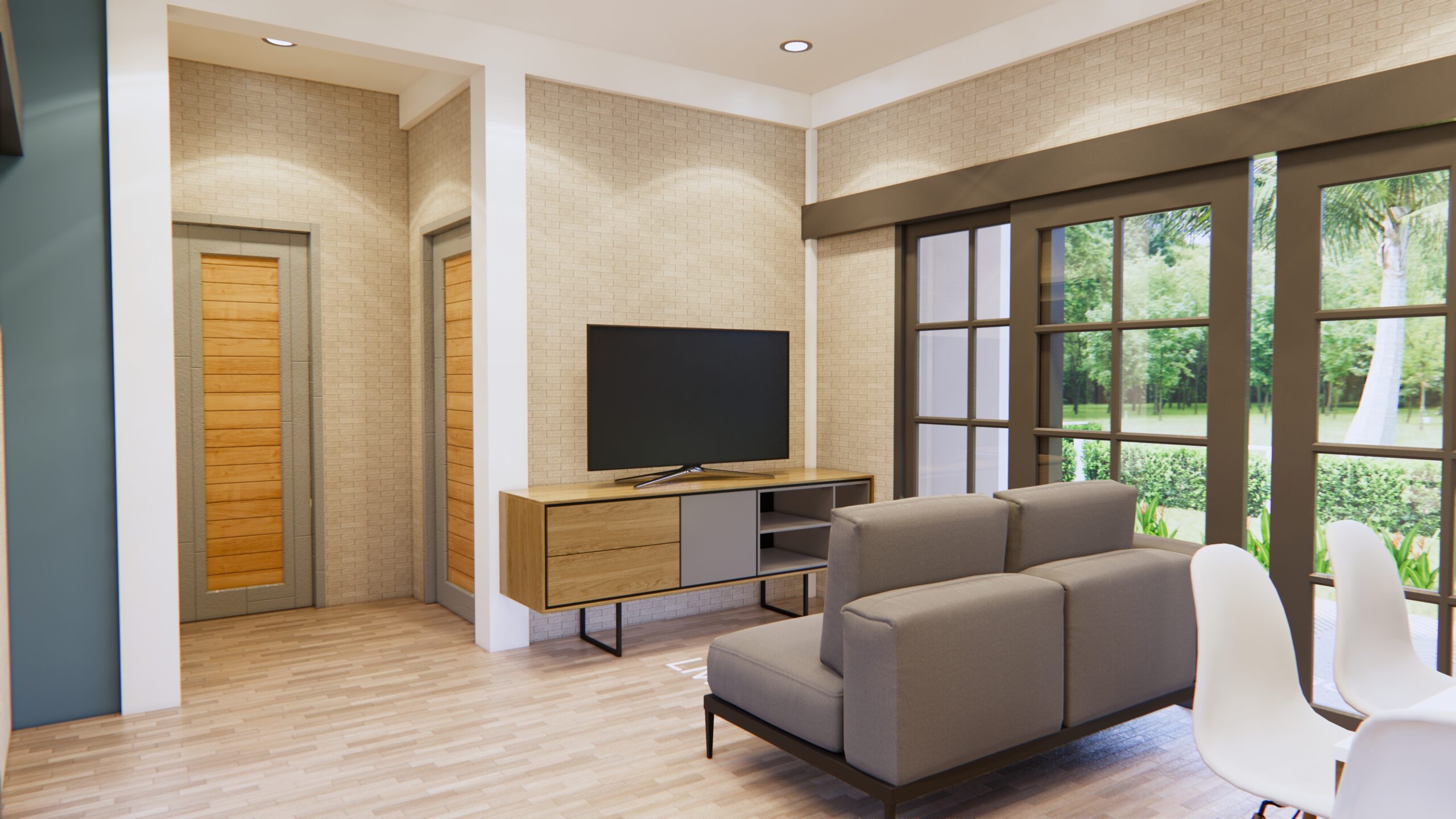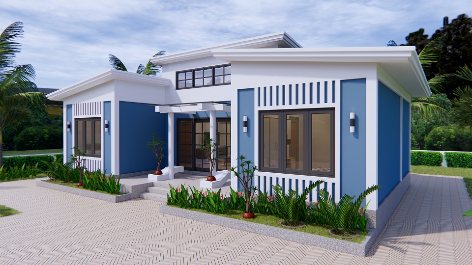 Finally, The Hip roof type is made from Cement tiles (or your local roof tiles) that cover above Gypsum board ceiling . It make the house look clean and modern.